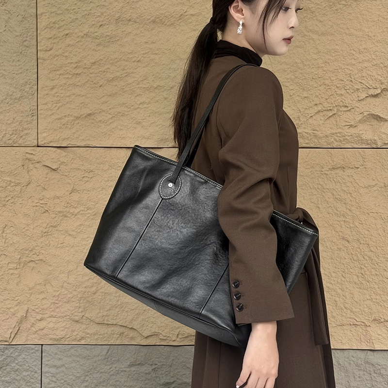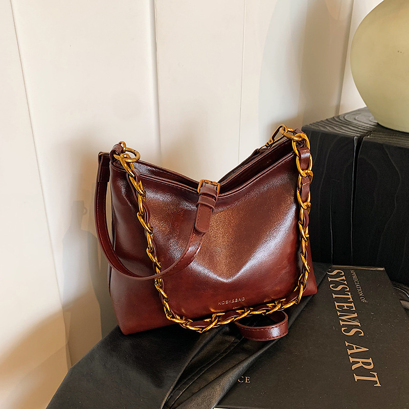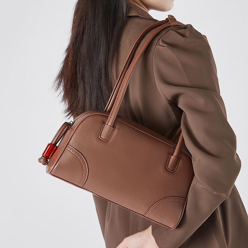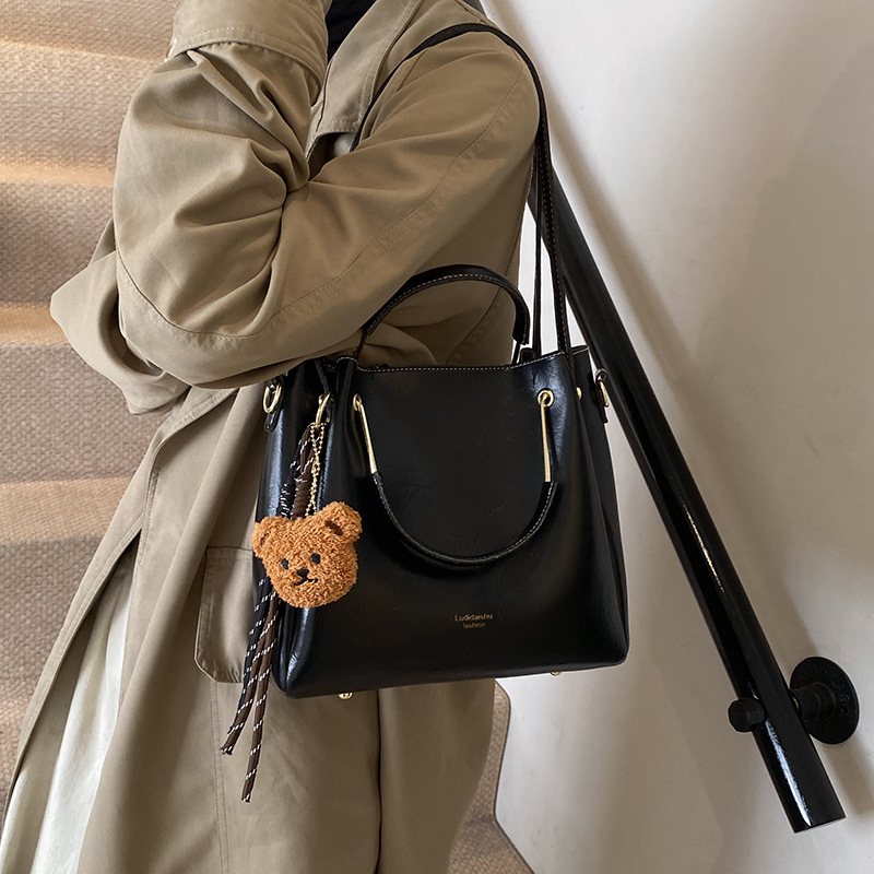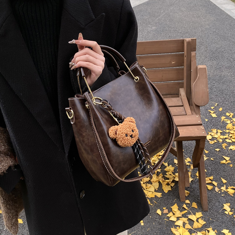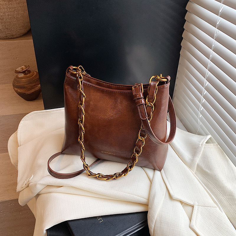 Soft Leather Woman Bags Bucket Shoulder Hand Bag for Women, 26cm