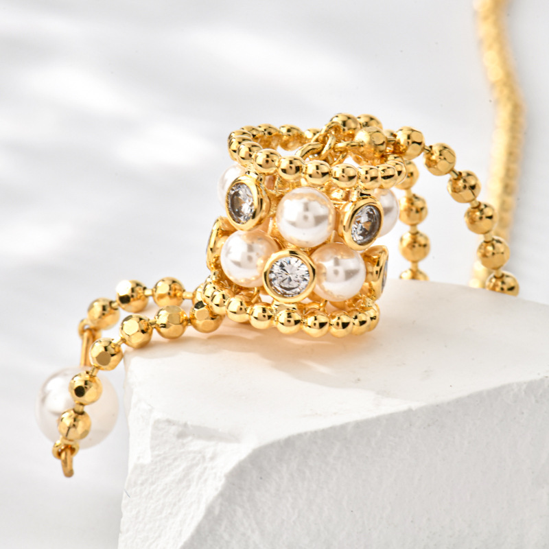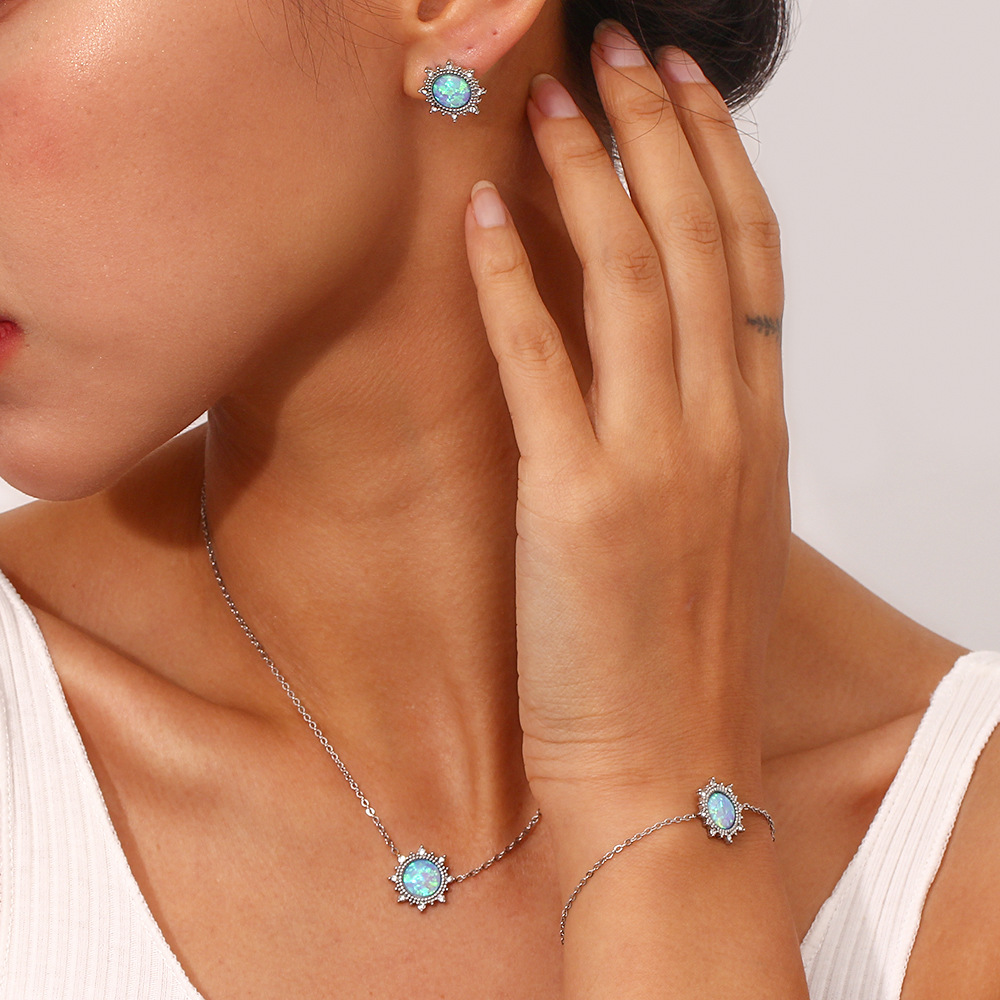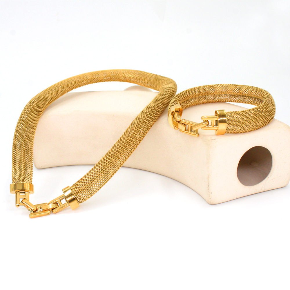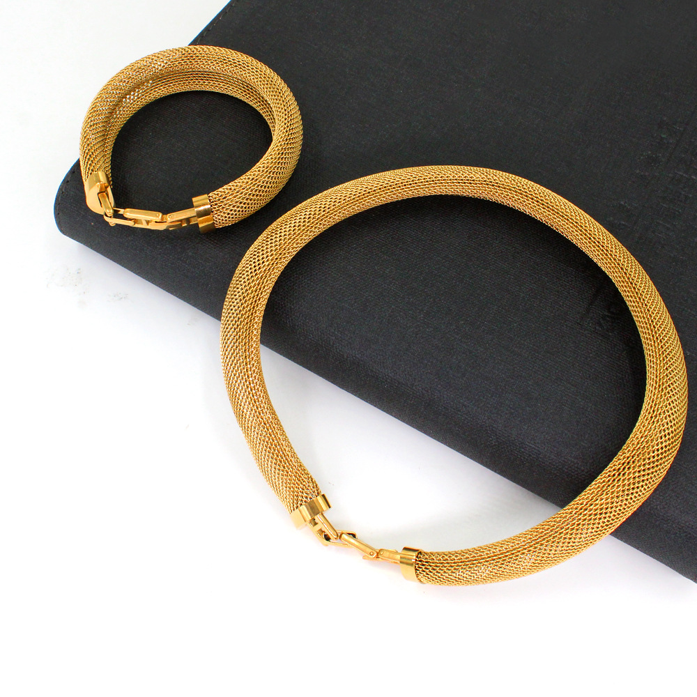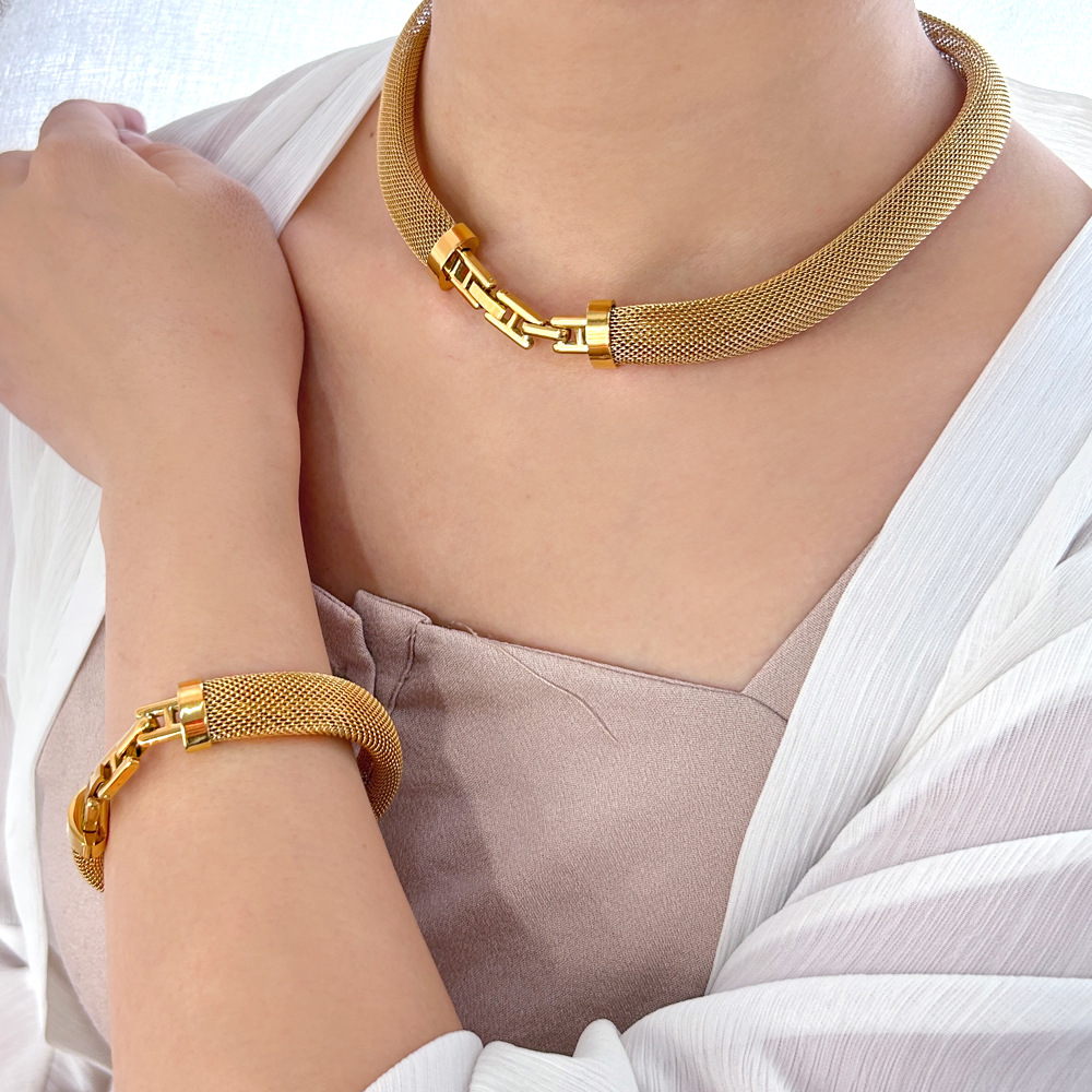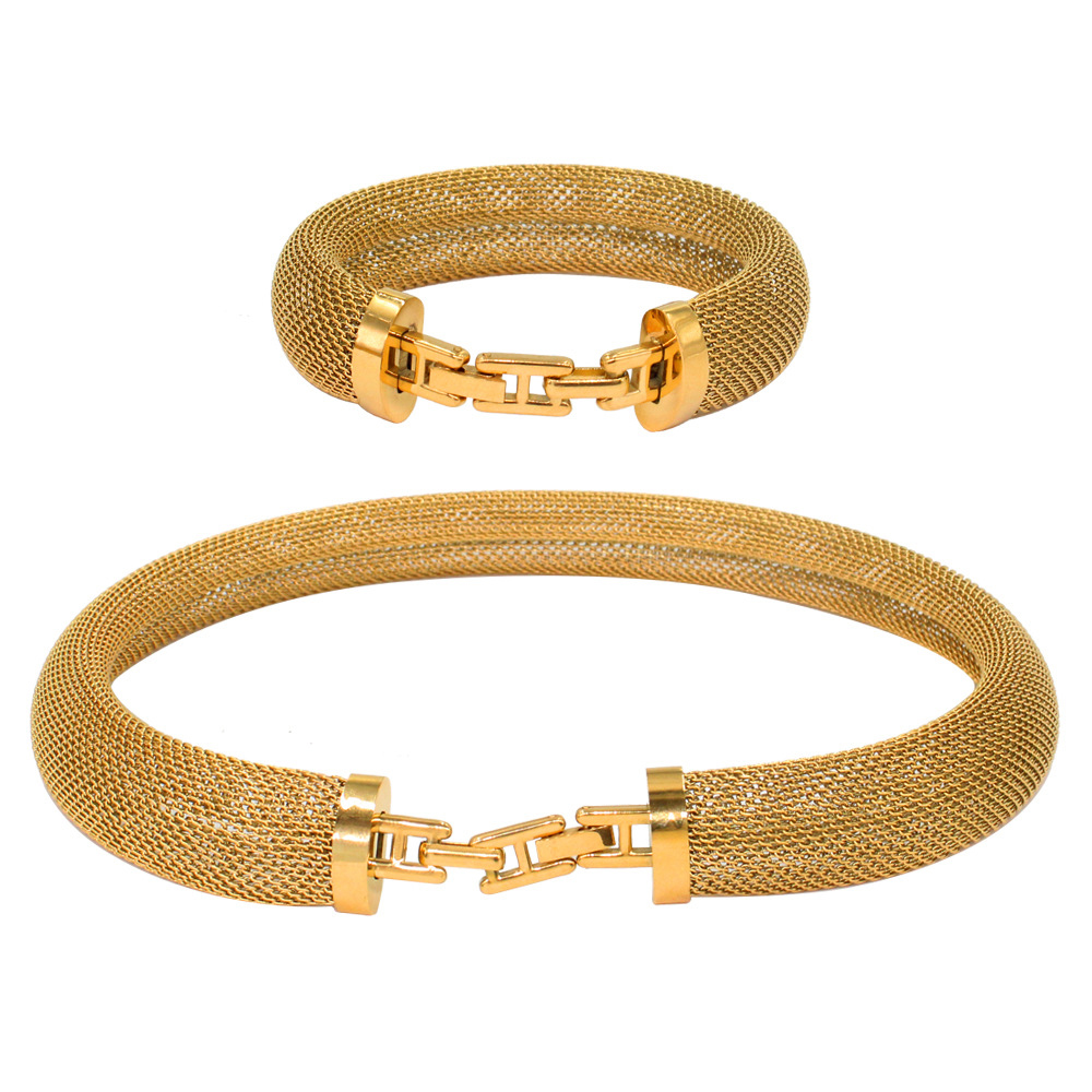 14K Gold Plated Bracelet Necklace and Stud Earring Set