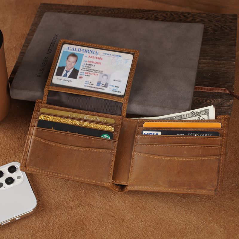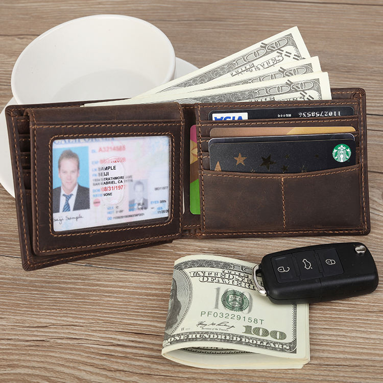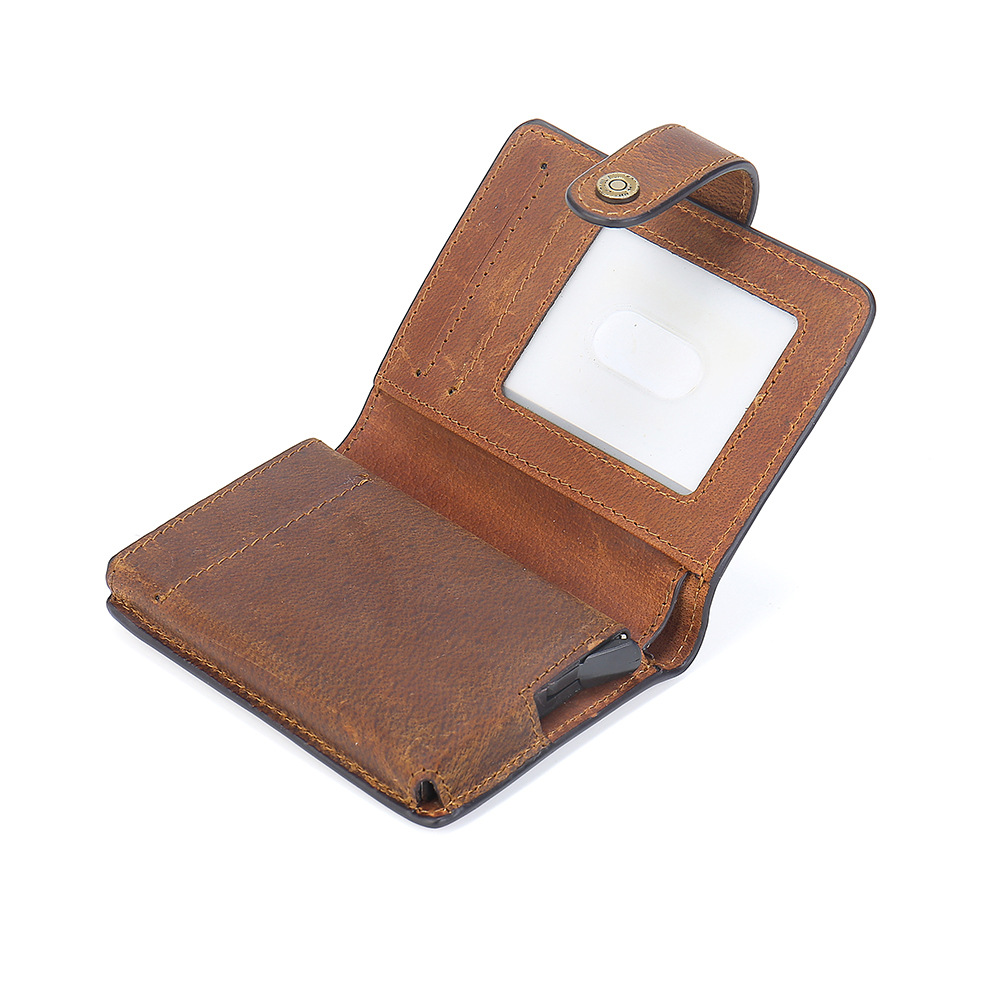 Leather Card Holder Short Wallet, 11 x 8.5 x 3.5cm