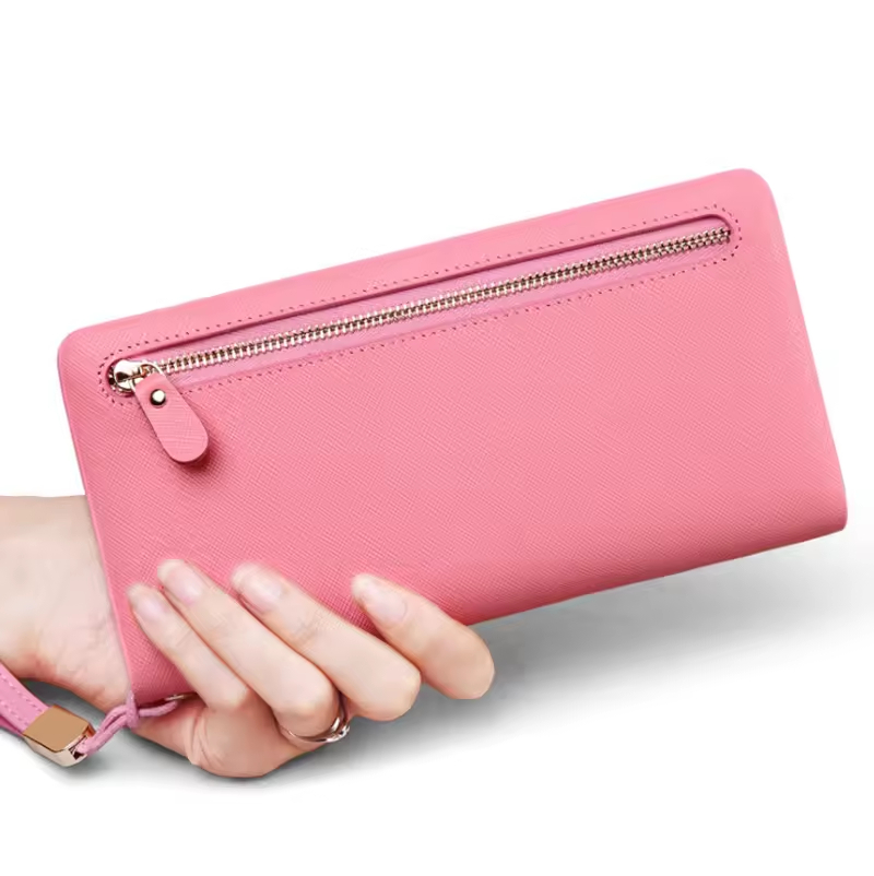Large Travel Purse Leather Women’s Zip Around Wallet, 19*10cm